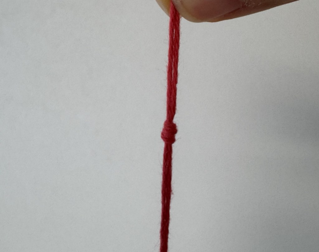 4. 모빌에 걸었을 때 빠지지 않도록 실을 두껍게 매듭 짓는다.