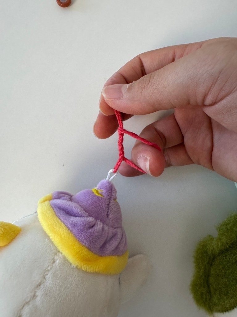 2.인형의 플라스틱 고리를 모두 제거한다.(실로 된 고리만 남김)